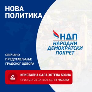 “Nakon održavanja Svečane konstitutivne skupštine Gradskog odbora u Banjoj Luci, kojom započinjemo novu fazu organizovanja i djelovanja, želimo da pred građane izađemo otvoreno, odgovorno i sa jasnim ciljevima. Predstavićemo tim ljudi koji preuzima odgovornost da Narodni demokratski pokret u Banjoj Luci učini snažnim, prepoznatljivim i istinski narodnim. Na čelu sa predsjednikom partije Bojanom Šapurićem i predsjednikom Gradskog odbora Mladenom Tešanovićem, naš tim donosi energiju, znanje i odlučnost da ponudimo novu politiku. Idealan je trenutak da novi ljudi, nova energija i drugačiji pristup društvu dobije prostor u našoj Banjaluci.” – NDP.